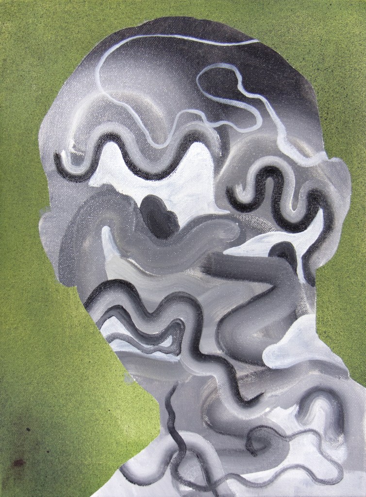 indecision, 2018. Oil and Spray Paint on Canvas, 12″ x 16″