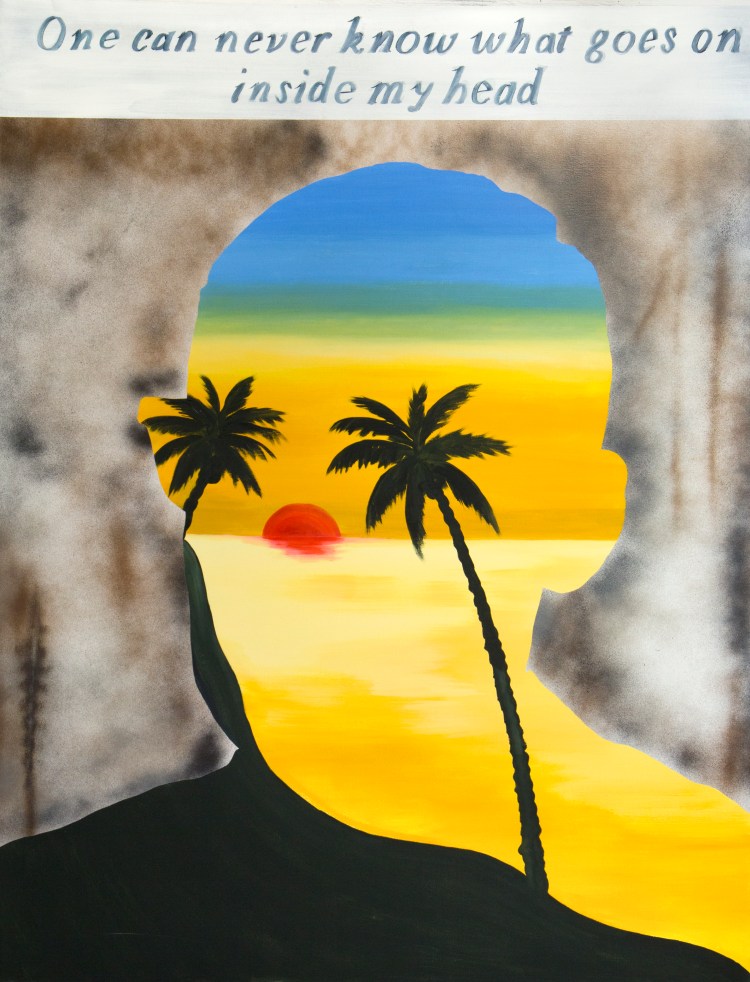 No Bad Days, 2017. Oil and Spray Paint on Canvas, 42″ x 46″